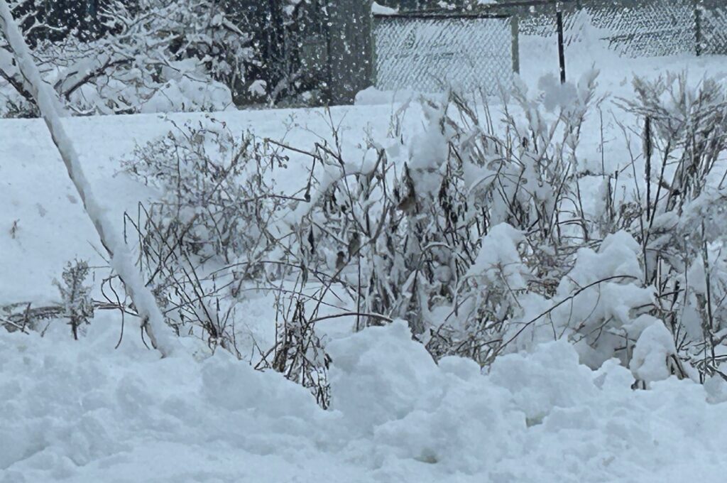 ※注意してみていただくと見えますが、先日の降雪後、元気にスズメが二羽すすきの枝にとまっておりました。